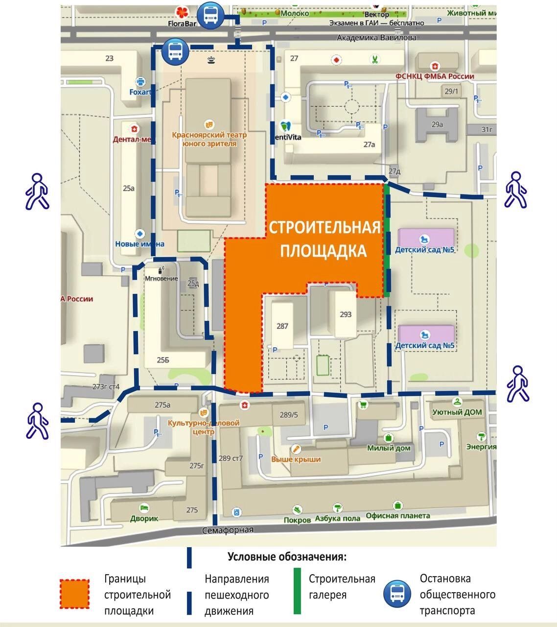 При этом существующий сейчас сквозной междворовой проезд с Вавилова на Семафорную закрыли для движения.