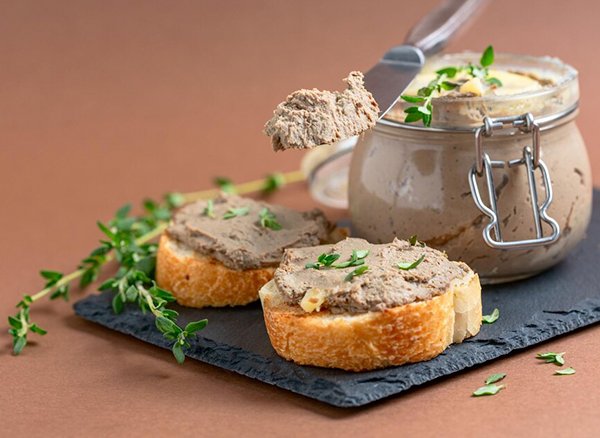 Такой паштет имеет насыщенный вкус, сочетающий в себе несколько оттенков. Подавай его в качестве закуски к вину или пиву.