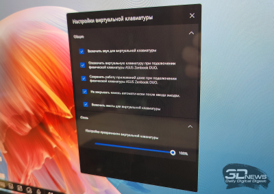 По умолчанию оба экрана работают в режиме расширения. Различные манипуляции между дисплеями доступны в приложении ScreenXpert. Здесь мы можем менять настройки экранов, делить их на части, переворачивать, а также запускать приложения, которые загружаются в программе My ASUS. Например, на ноутбуке предустановлена программа Quick Key — она предоставляет доступ к часто используемым комбинациям клавиш. Конечно же, можно настроить и свои комбинации. В ControlPanel настраиваются громкость динамиков и яркость дисплея. В NumberKey активируется цифровой блок. Здесь же включается и настраивается виртуальная клавиатура ноутбука.