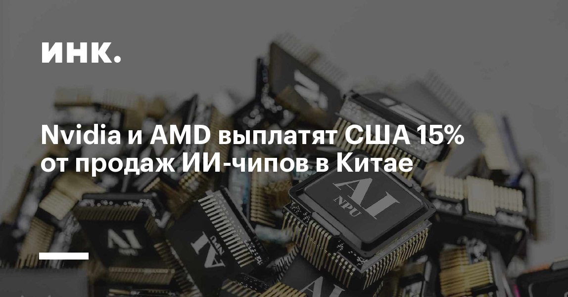 Американские компании Nvidia и AMD договорились перечислять правительству США 15% выручки от продаж чипов для искусственного интеллекта в Китае в обмен на экспортные лицензии. Об этом сообщили агентства Bloomberg и Reuters со ссылкой на источники и официальных лиц.