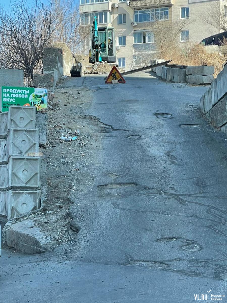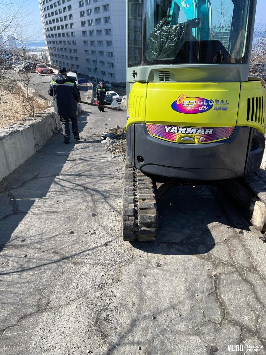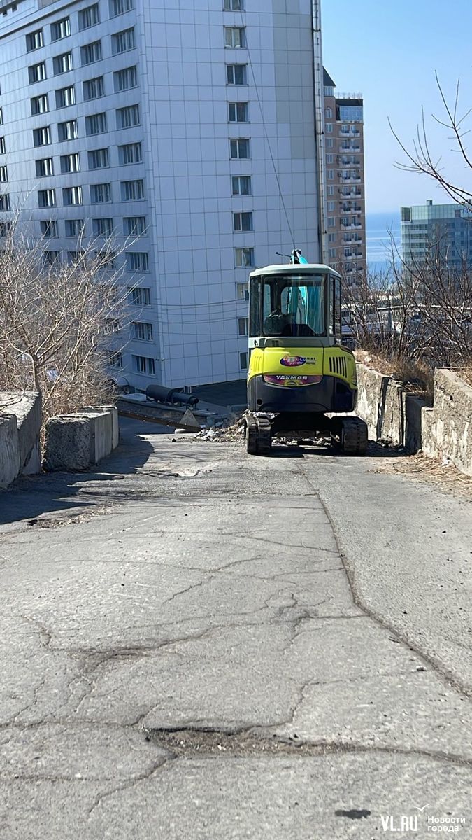 Около полудня по подъёме от Тигровой по Инженерному переулку появился маленький экскаватор и начал разбирать дорогу, ведущую к нескольким домам. Жители пошли разбираться.