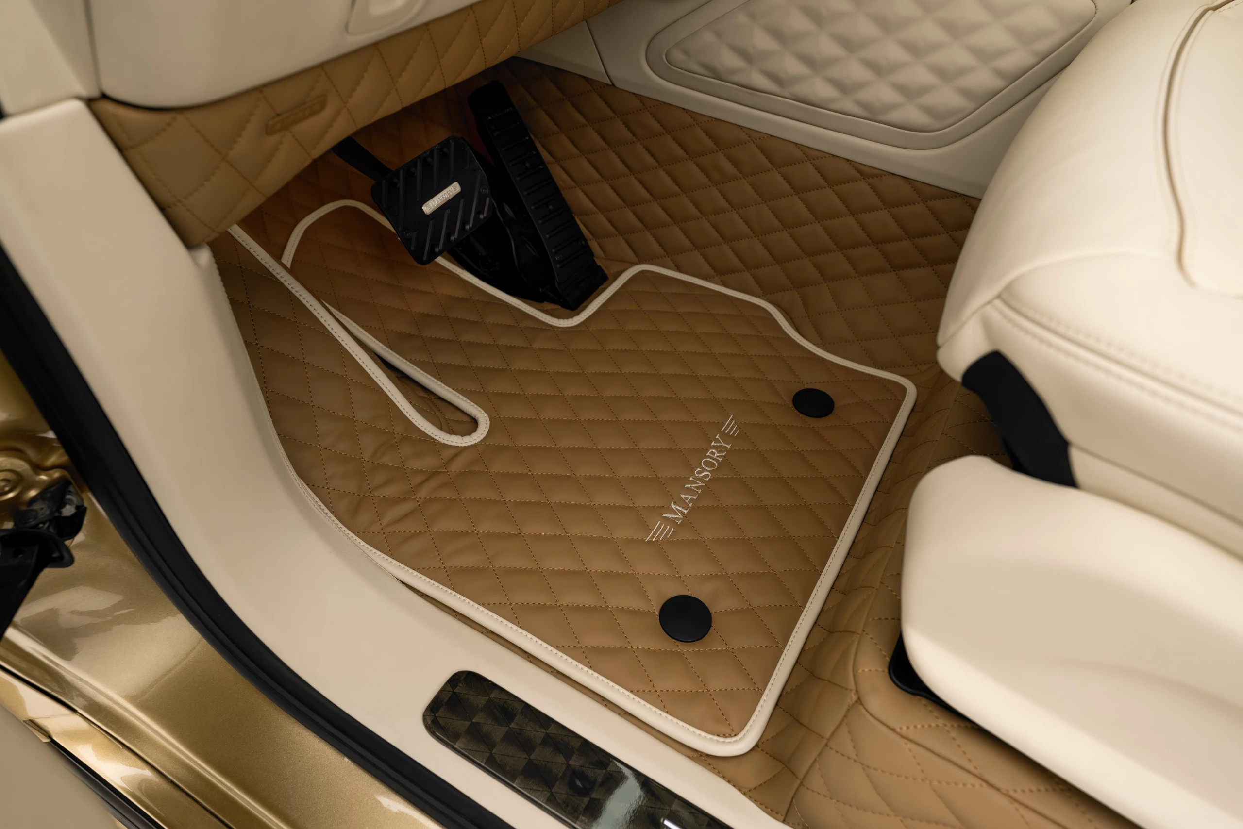 Главная «фишка» Mansory P900 EWB Gold Edition, впрочем, — не форсированный двигатель, а удлинённый на 20 см по сравнению со стоковой машиной кузов, окрашенный в золотой цвет. Вся прибавка пришлась на колёсную базу, чтобы можно было отодвинуть второй ряд кресел от первого и обеспечить там королевский комфорт на уровне представительских седанов.
