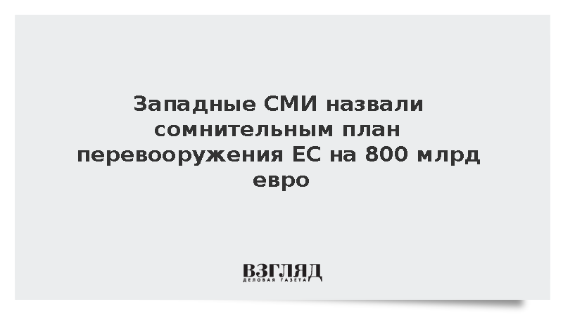 Портал Euractiv подверг критике план перевооружения Евросоюза на 800 млрд евро, предложенный Еврокомиссией, отметив, что он основан на предположениях и не учитывает реальных возможностей стран-членов.