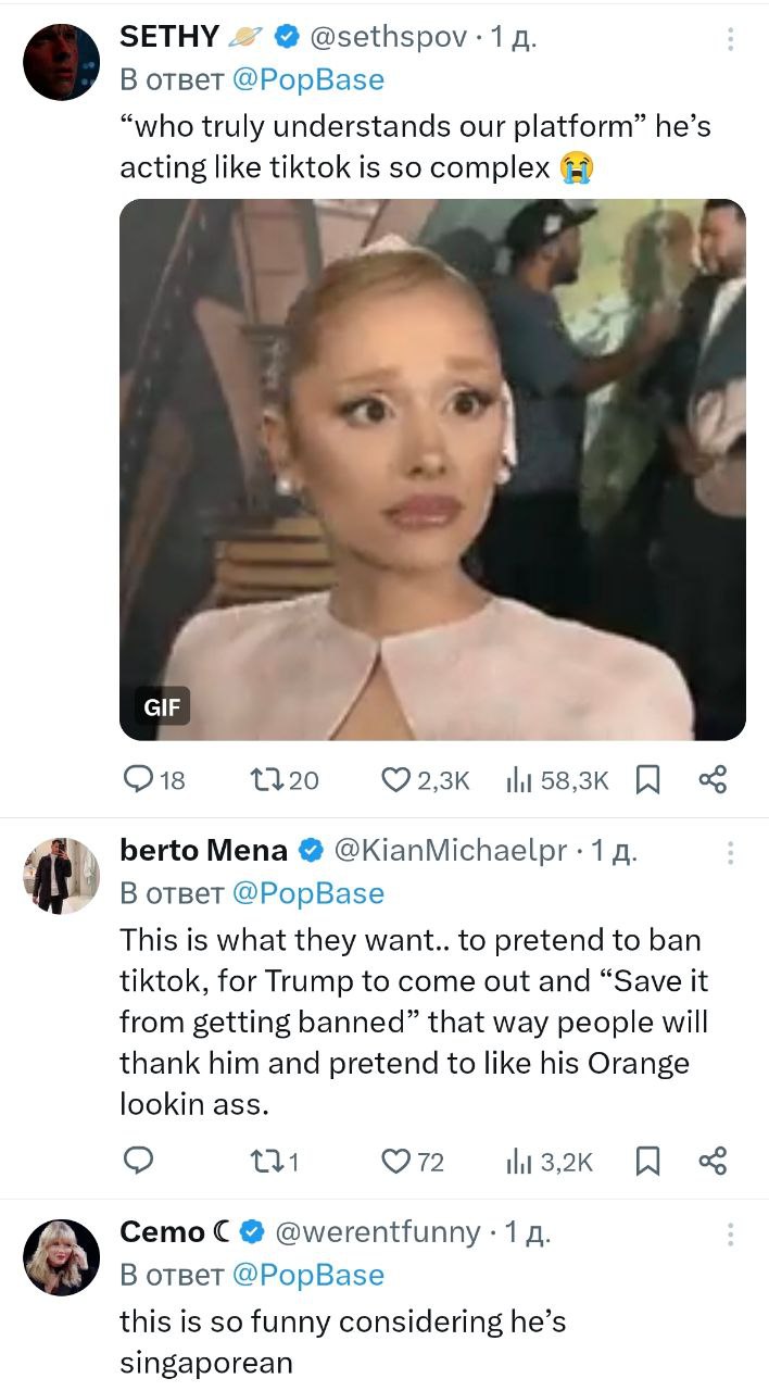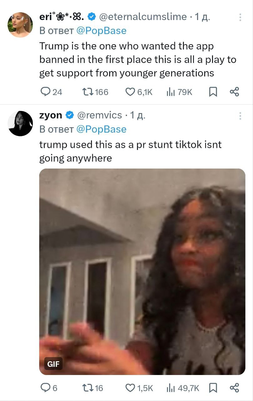 Президент TikTok благодарит Трампа за поиск решений по разблокировке соцсети в США, но в X/Twitter уверены, что это «крупнейший договорняк в истории США».