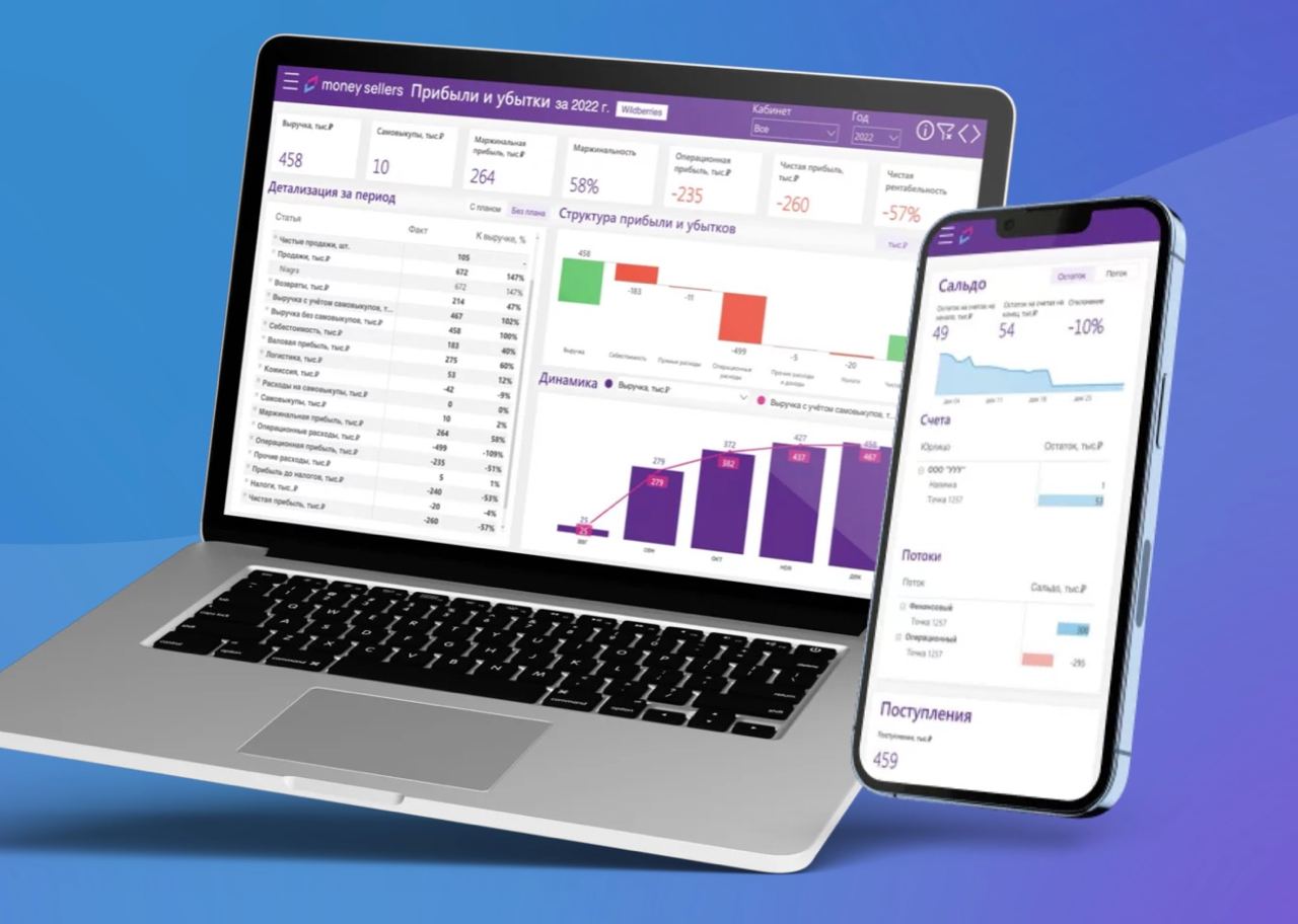 - Money Sellers предназначен для компаний, которые торгуют на Wildberries и Ozon. Основное назначение системы — автоматически считать финансовые показатели бизнеса на маркетплейсах (такие как EBITDA, чистая прибыль) и помогать владельцам компаний принимать управленческие решения на основе цифр (можно формировать отчетность в форматах P&L, CashFlow, проводить ABC-анализ, считать UNIT-экономику по каждому SKU и другое).