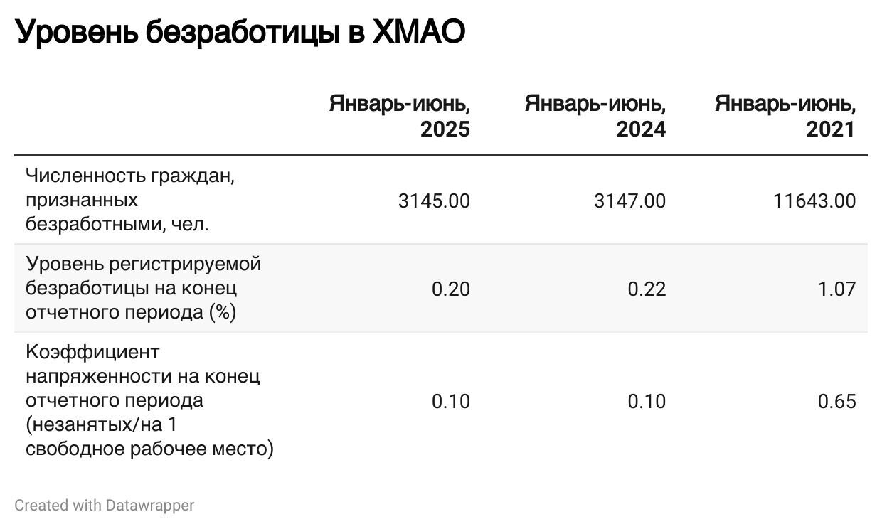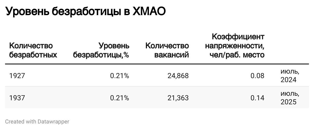 В ХМАО, судя по данным регионального дептруда и занятости ситуация схожая: по данным на июль 2025 года безработных осталось то же количество, зато вакансий стало меньше. За счет этого вырос и коэффициент напряженности. Правда, в полугодовом выражении он пока не изменился.
