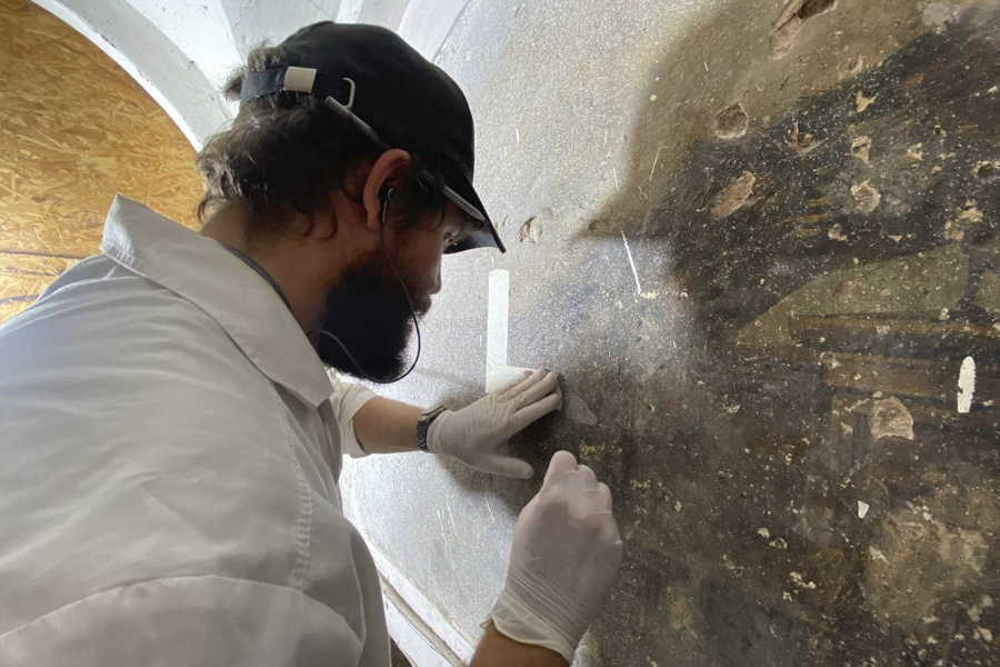 Специально для работы над росписью, на которой изображен павлин, Фонд пригласил реставратора из Санкт-Петербурга. Он провёл необходимые исследования и планирует уже в этом сезоне приступить к восстановлению.
