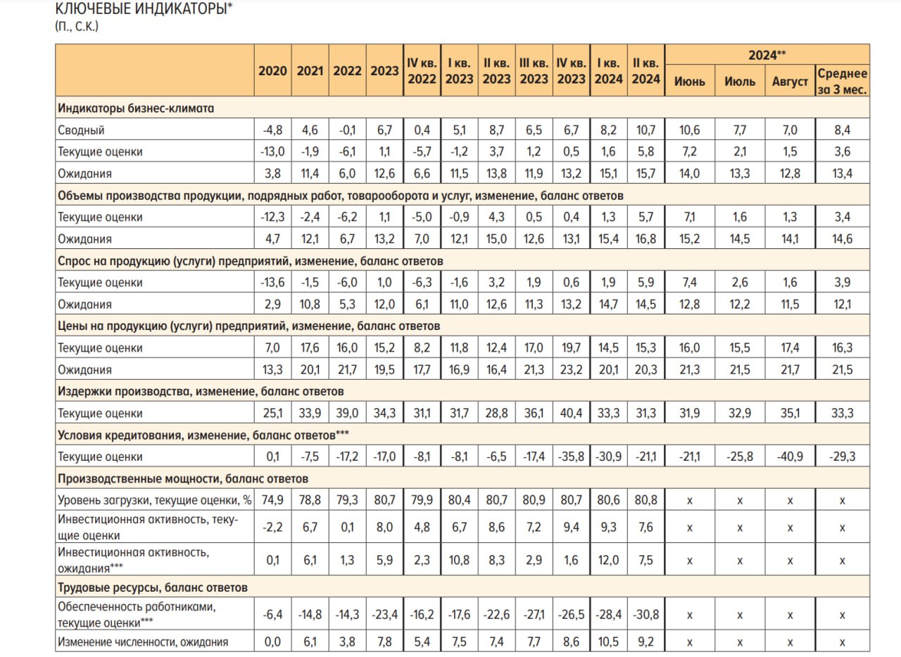Как это интерпретировать? Экономика растет – индикатор бизнес-климата в августе чуть выше среднего уровня 2023, но от интенсивного экономического расширения фев-июн.24 перешли к умеренным темпам роста с июля, но пока еще рост, тогда как сила «сброса пара» сильнейшая с весны 2022, а последний раз подобное замедление было летом 2023.