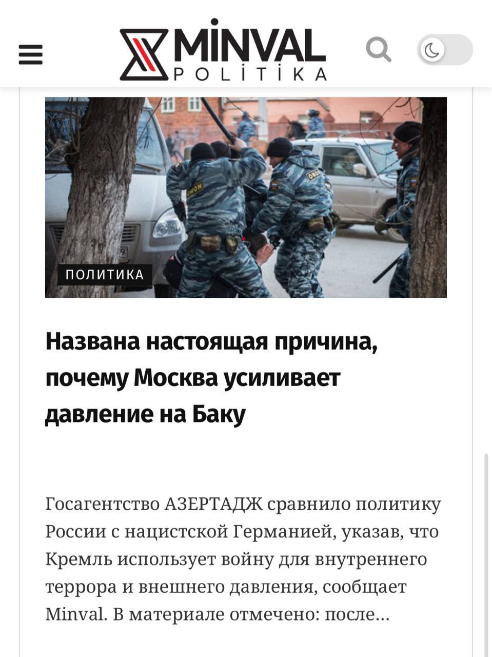 Тем временем азepбайджанские СМИ сравнивают политику России с нацистской Германией.