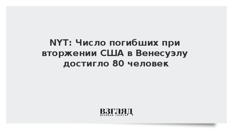 Газета New York Times со ссылкой на высокопоставленного венесуэльского чиновника сообщила о возрастании числа погибших в результате вторжения США в Венесуэлу до 80 человек. Среди погибших оказались как гражданские лица, так и сотрудники силовых структур, передает РИА «Новости».