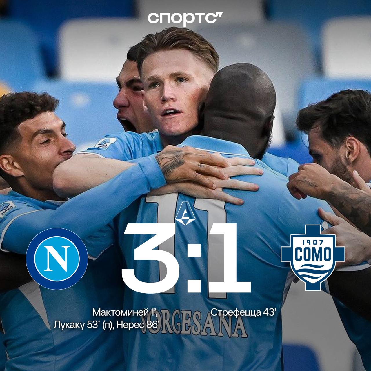 🇮🇹🇧🇪 «Наполи» Конте одержал четвертую победу подряд, переиграв «Комо» Фабрегаса. Мактоминей забил на 25-й секунде, у Лукаку гол и два ассиста