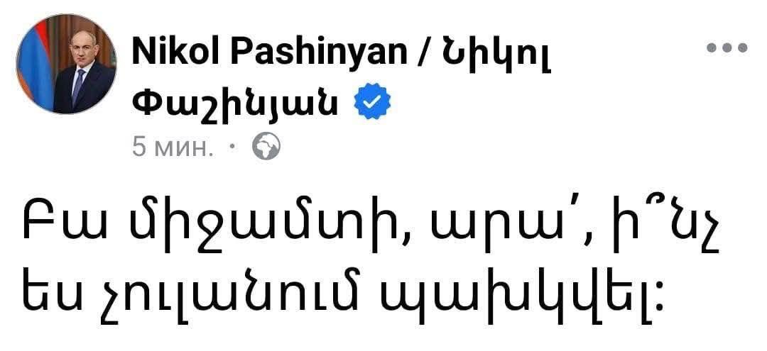 Из фейсбука премьера Армении Никола Пашиняна — прямое обращение к российскому меценату Самвелу Карапетяну [о попытках его ареста и обыске за слова в защиту Апостольской Церкви пестрят армянские сети]: