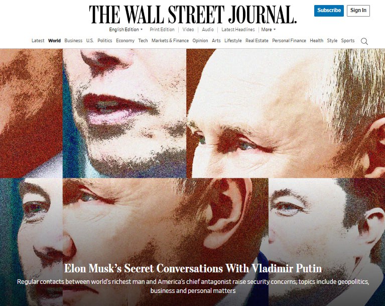 Маск регулярно поддерживает контакты с Путиным с 2022 года Wall Street Journal пишет, что миллиардер и президент РФ якобы обсуждают личные вопросы, бизнес и геополитическую напряжённость. Утверждается также, что среди тем «разговоров» Путина и Маска был тайваньский вопрос. Правительство США знает о контактах Маска с Москвой и не одобряет их, говорится в материале. Маск, пишет WSJ, наладил глубокие деловые связи с американскими военными и разведывательными агентствами, что даёт ему уникальную возможность следить за некоторыми из самых секретных космических программ Америки. Подписывайтесь на «Абзац»