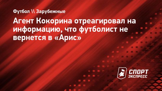 Агент Тимофей Бердышев, представляющий интересы нападающего Александра Кокорина, в комментарии для «СЭ» отреагировал на новость о том, что футболист не вернется в «Арис».