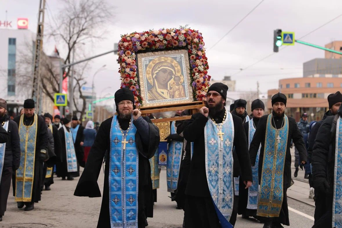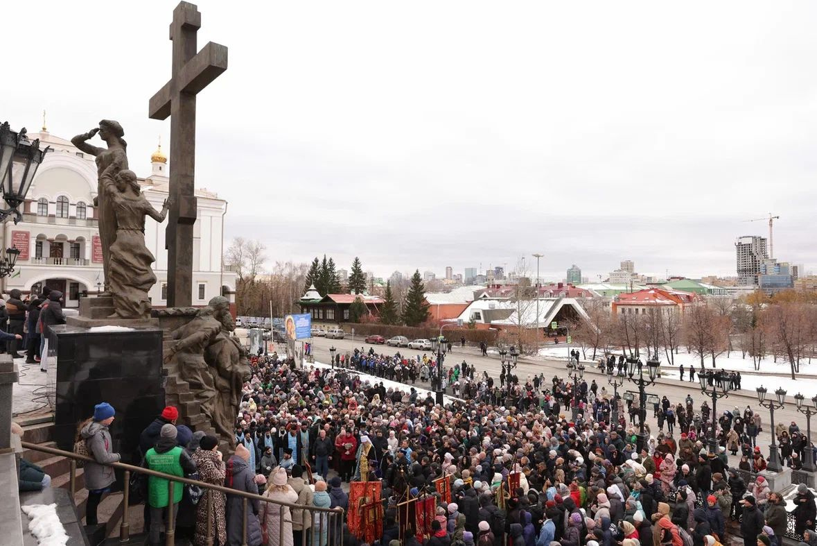 Тысячи верующих и иконы на ТЦ. Ради чего центр Екатеринбурга перекрыли без предупреждения: 10 фото
