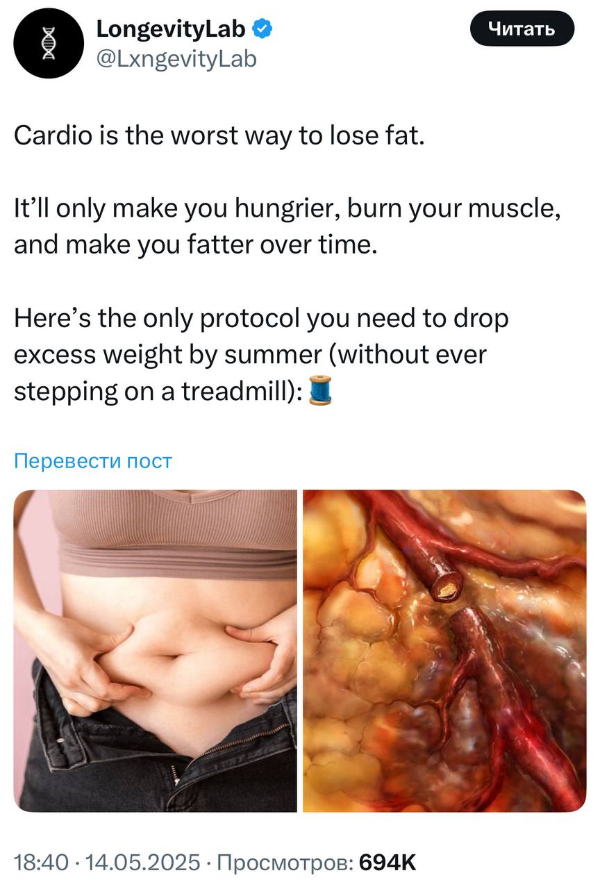▪️Чрезмерные кардионагрузки могут повышать уровень гормона стресса кортизола. Хронически высокий кортизол связывают с накоплением жира в области живота, усилением тяги к нездоровой пище и гормональными нарушениями.