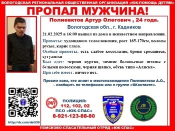 24-летний Артур Полиевктов, житель Кадникова, 21 февраля вышел из дома примерно в 16 часов и не вернулся. Родные очень переживают за молодого человека. В его поиски вовлечено множество людей. Но, похоже, что этого недостаточно.