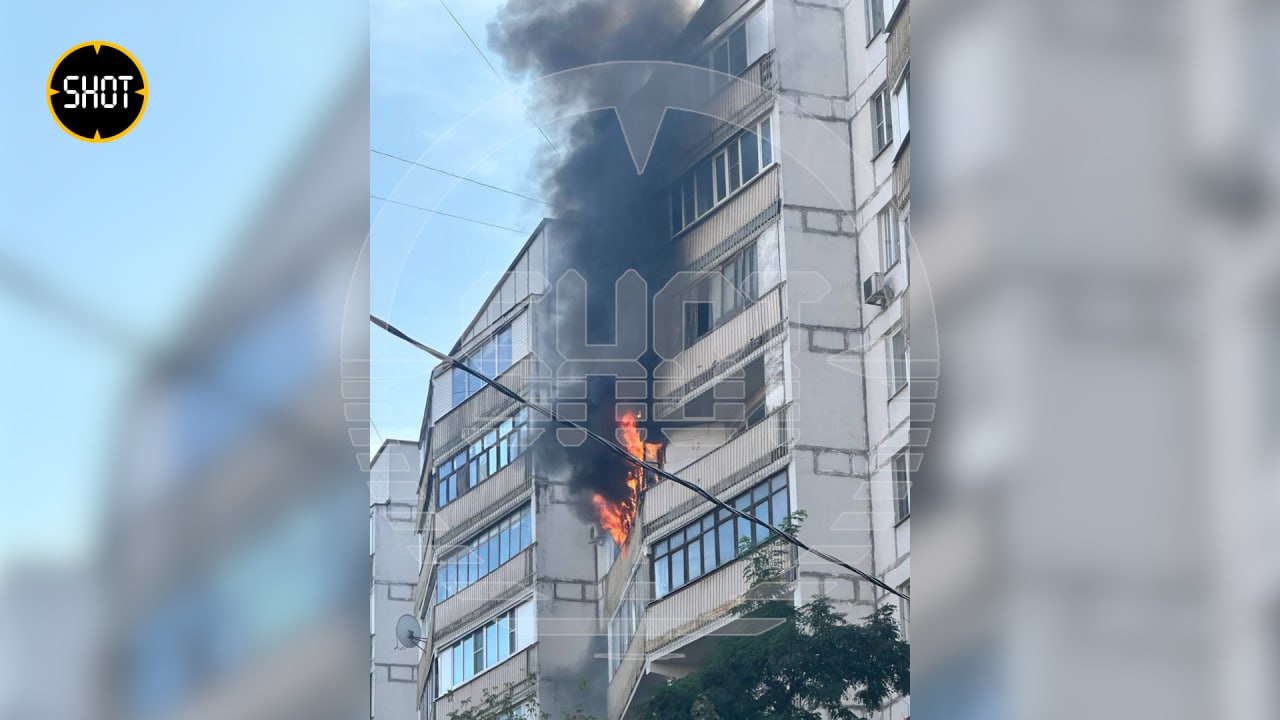 По данным SHOT, оглушительный хлопок произошёл в многоэтажке на улице Газопровод. Сейчас горит квартира на девятом этаже.