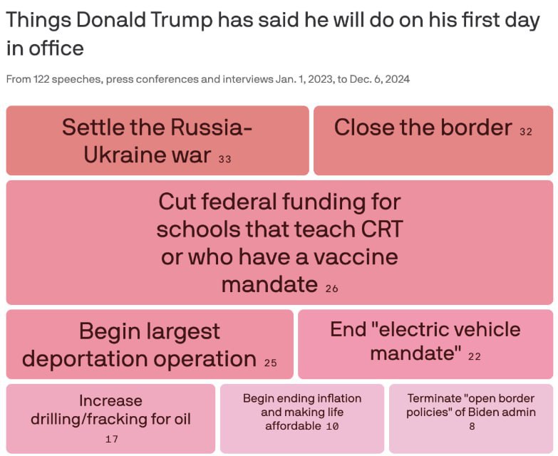 ΠΠ·Π΄Π°Π½ΠΈΠ΅ Axios ΠΏΡΠΎΠ°Π½Π°Π»ΠΈΠ·ΠΈΡΠΎΠ²Π°Π»ΠΎ Π²ΡΠ΅ ΠΏΡΠ±Π»ΠΈΡΠ½ΡΠ΅ Π·Π°ΡΠ²Π»Π΅Π½ΠΈΡ ΡΠ΅ΡΠΏΡΠ±Π»ΠΈΠΊΠ°Π½ΡΠ° Ρ 1 ΡΠ½Π²Π°ΡΡ 2023 Π³ΠΎΠ΄Π° ΠΏΠΎ 6 Π΄Π΅ΠΊΠ°Π±ΡΡ 2024 Π³ΠΎΠ΄Π°. Π‘ΠΎΠ³Π»Π°ΡΠ½ΠΎ ΠΏΠΎΠ΄ΡΡΠ΅ΡΠ°ΠΌ, Π½ΠΎΠ²ΡΠΉ ΠΏΡΠ΅Π·ΠΈΠ΄Π΅Π½Ρ Π‘Π¨Π ΠΏΠΎΠΎΠ±Π΅ΡΠ°Π» ΡΡΠ΅Π³ΡΠ»ΠΈΡΠΎΠ²Π°ΡΡ ΡΠΈΡΡΠ°ΡΠΈΡ Π½Π° Π£ΠΊΡΠ°ΠΈΠ½Π΅ 33 ΡΠ°Π·Π°.