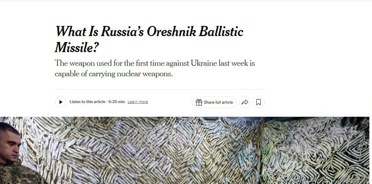 🚀 «Орешник» стал самым дальнобойным оружием, когда-либо применявшимся в Европе – The New York Times