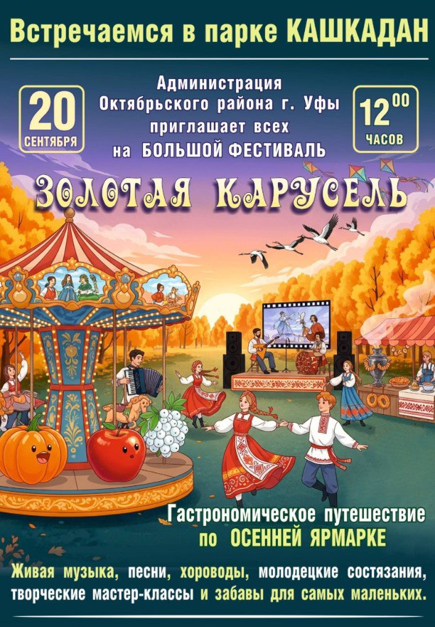 В Уфе 20 сентября пройдёт большой фестиваль «Золотая карусель», посвящённый времени сбора урожая