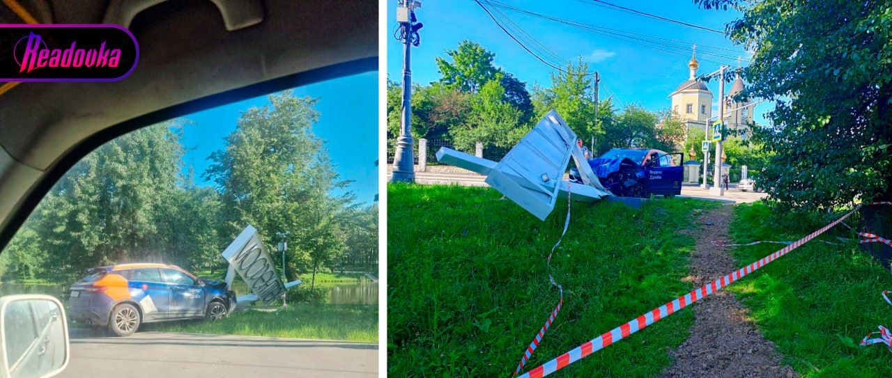 Так выглядит утро невыспавшегося человека — водитель каршеринга снес стелу «Мосрентген» в Новой Москве