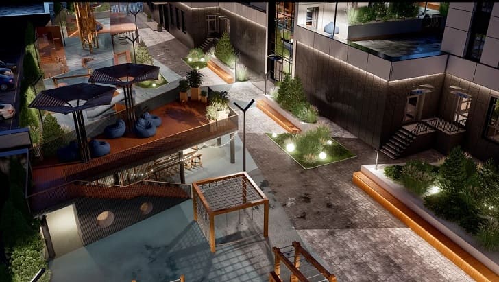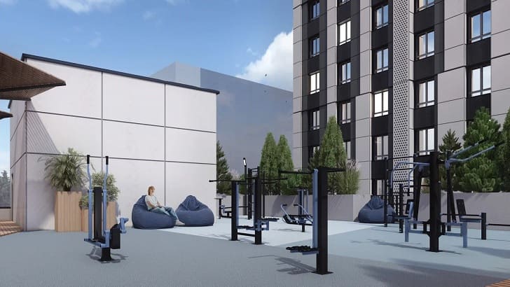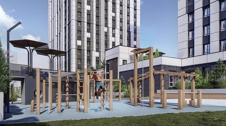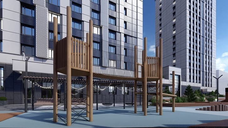 Отдельно необходимо выделить и двор жилого комплекса, воплощенный для Уфы интересно и непривычно. Во-первых, здесь будет безопасно, так как планируется реализовать концепцию «закрытый двор», полностью исключающую проникновение автомобилей и чужих людей на территорию. Во-вторых, он будет утопать в зелени. В-третьих, занятие по душе здесь найдут все резиденты дома: для детей оборудуют современные игровые площадки, для взрослых – зоны для занятий спортом и прогулок.