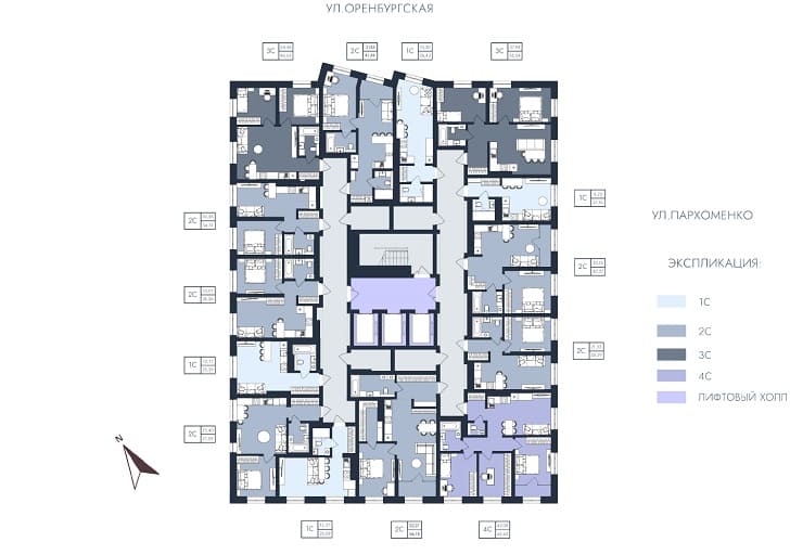 Планировки отличаются множеством продуманных решений, которые помогут сделать жизнь будущих жильцов максимально удобной. Так, вместо широких коридоров, бесцельно занимающих полезную площадь, здесь обустроены функциональные зоны, которые подстраиваются под нужны разных семей. Также здесь предусмотрены встроенные ниши для гардероба, мастер-спальни, увеличенные окна.