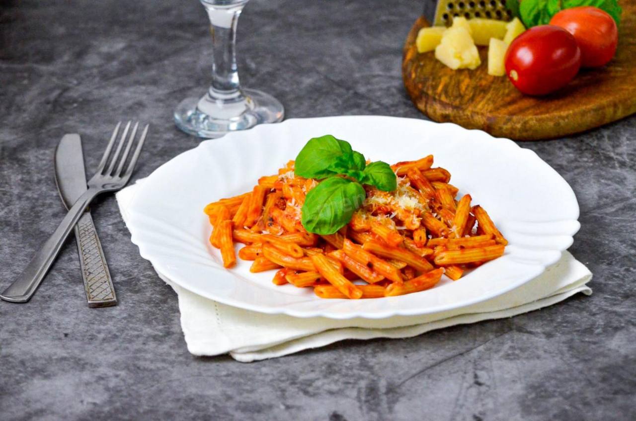 6. Пенне отварите до готовности в кипящей подсоленной воде, откиньте на дуршлаг.