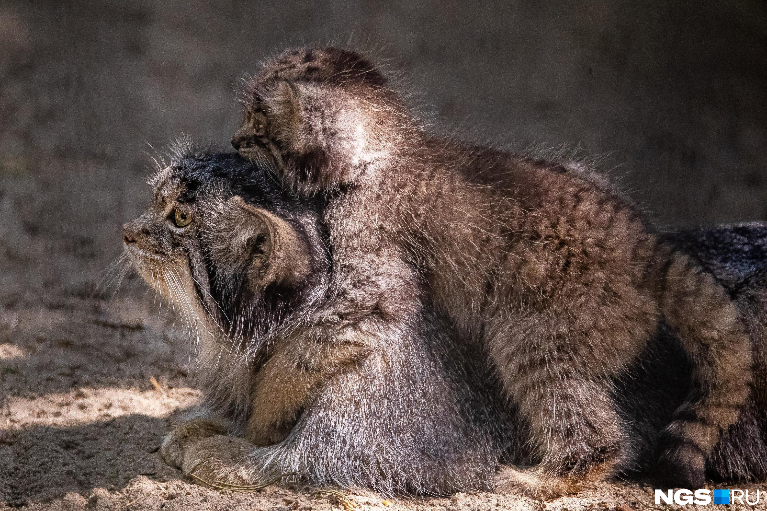 Обнял и сделал «кусь»: что приходится терпеть манулу Еве от подросших котят в Новосибирском зоопарке