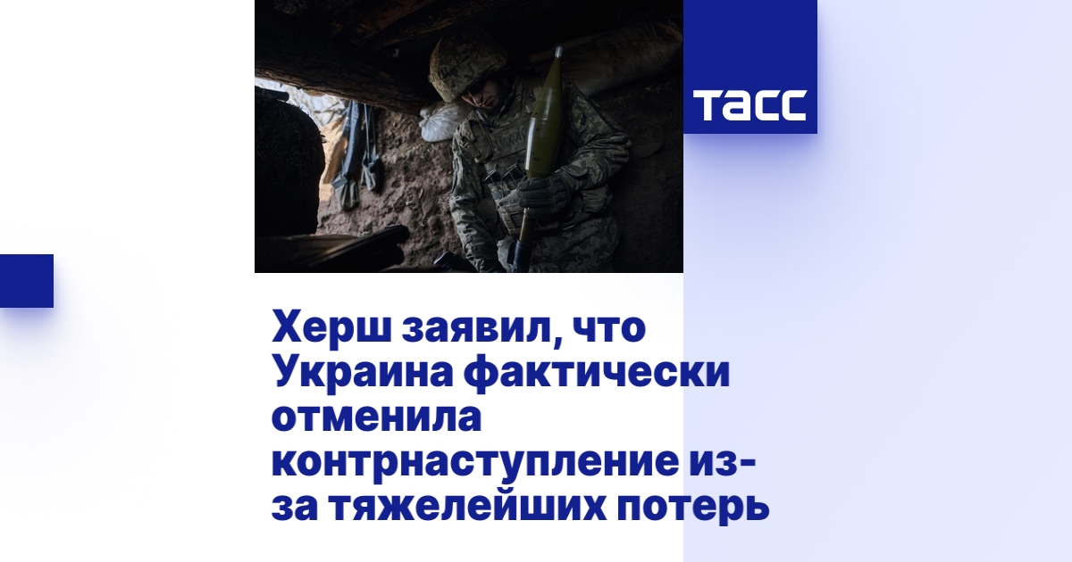 "После нескольких недель тяжелых потерь и ничтожного прогресса, а также ужасающих потерь танков и бронетехники основные части украинской армии, не объявляя об этом, фактически отменили наступление", - написал Херш на своей странице на платформе Substask.
