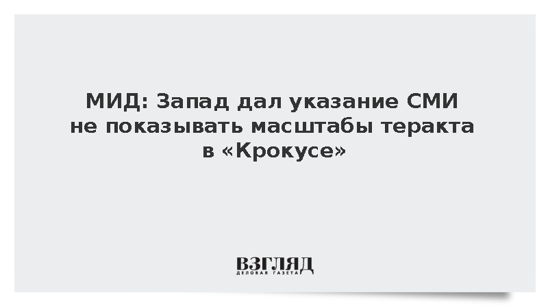 МИД заявил, что западные страны пытаются замолчать теракт в «Крокус Сити Холле» и не освещать его истинные масштабы.