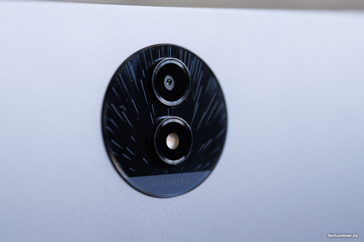 В TCL сделали фотомодуль на задней панели основным элементом, расположив его по центру вверху. На круглой глянцевой площадке размещены объектив и вспышка, вокруг них красиво разбегаются в стороны искорки (на фото, вероятно, это незаметно). Скорее всего, место для модуля выбрано ради визуальной гармонии и симметрии. Рамки вокруг экрана тонкие «с планшетной точки зрения».