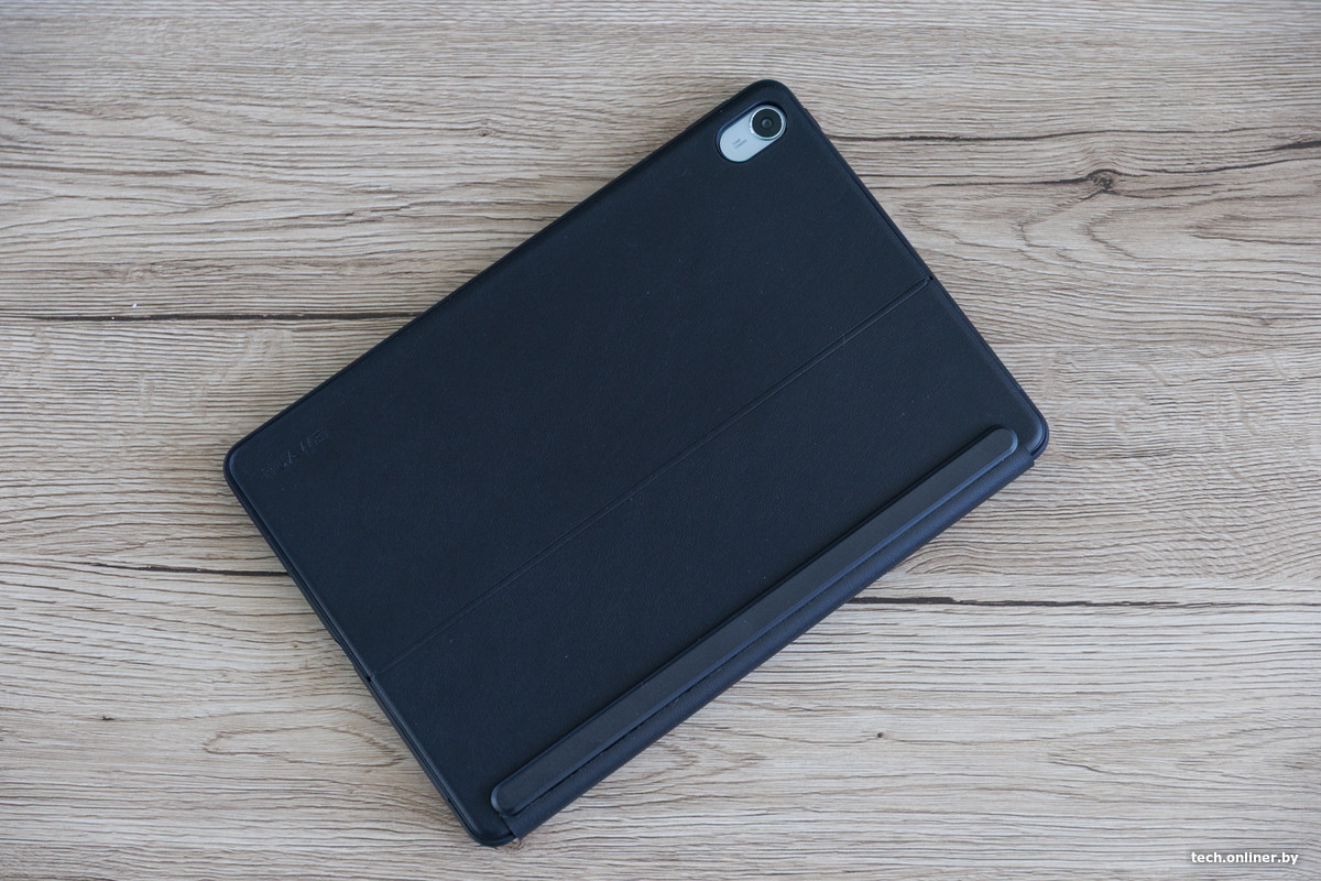 Одним из аксессуаров для Huawei MatePad 11.5" PaperMatte стал чехол-клавиатура. Внутрь планшет укладывается плотно, без намеков даже на минимальные люфты. Конечно, и веса прибавляется. Чехол выполнен из плотного пластика, гибким остается лишь соединяющий половинки элемент, магнитный замок удерживает устройство прочно.