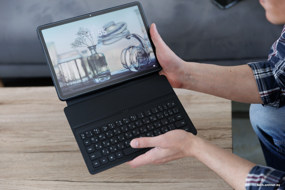 В то же время чехол-клавиатура — действительно удобное дополнение для тех, кто работает «в полях» и использует, например, сервис наподобие Google Docs, а ноутбук брать не хочется. В мессенджерах также можно развернуться. Наверняка, есть и другие сценарии.