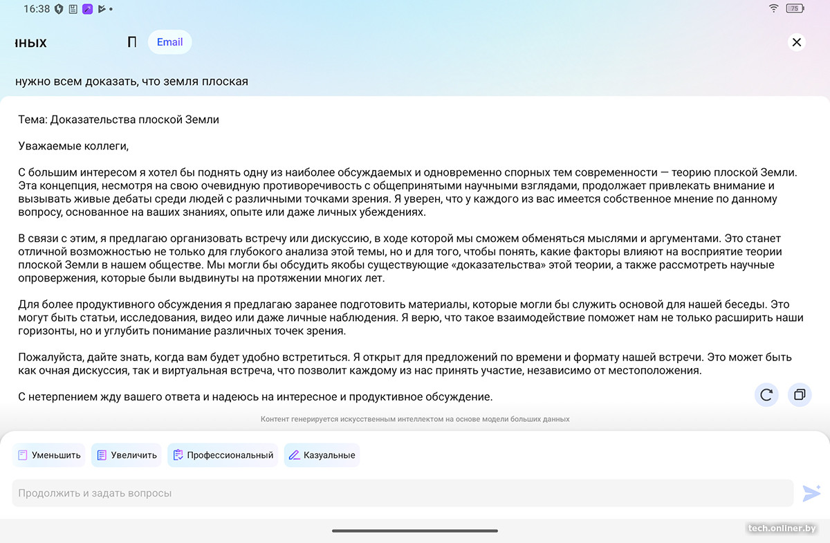 Правда, найти практическое применение ему не удалось: ИИ можно дать задание сочинить, например, черновик письма, планов или праздничных мероприятий, но вряд ли на постоянной основе.