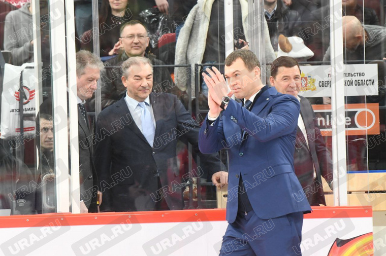 На открытие новой ледовой «УГМК-арены» в Екатеринбург прилетели многие федеральные VIP. С напутственным словом выступили секретарь Генсовета «Единой России», первый вице-спикер Совета Федерации Владимир Якушев, министр спорта РФ Михаил Дегтярев, полпред президента РФ в УрФО Артем Жога, губернатор Евгений Куйвашев и другие. За церемонией наблюдал корреспондент URA.RU.