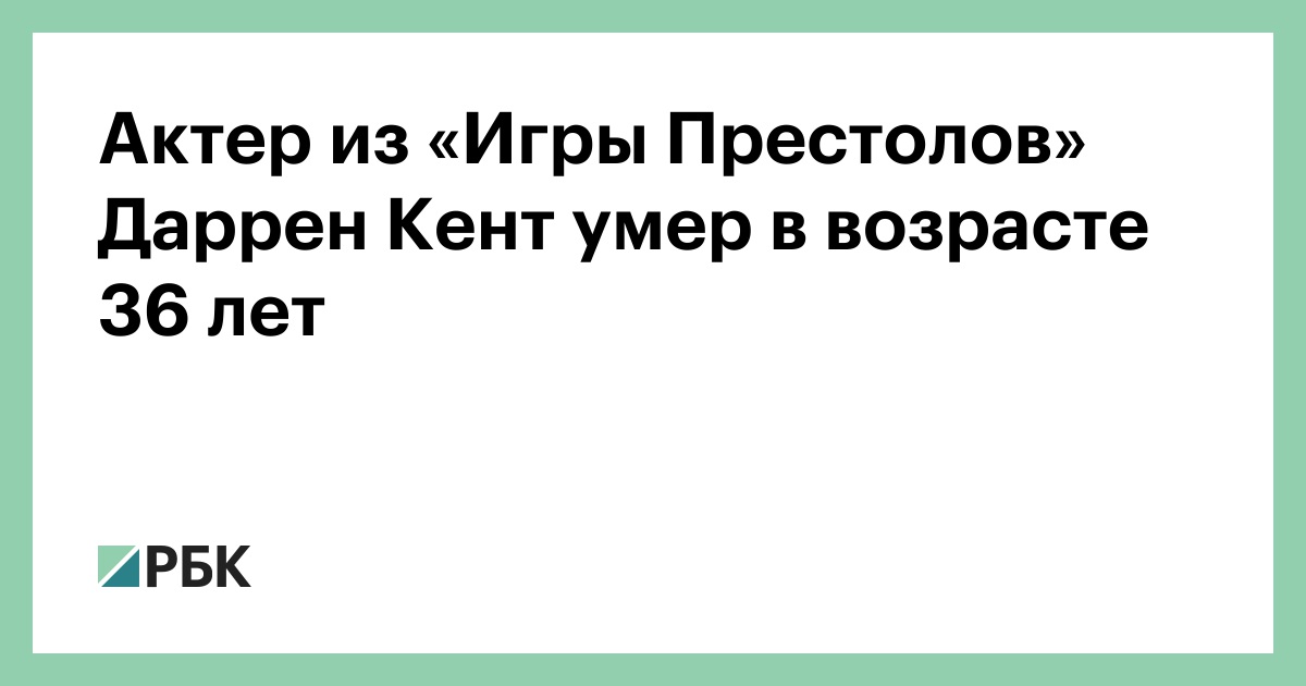 Британский актер Даррен Кент, который сыграл роль пастуха, оплакивающего свою дочь, в сериале «Игра Престолов», умер в возрасте 36 лет. Об этом сообщило его агентство Carey Dodd Associates в социальной сети X (ранее — Twitter).