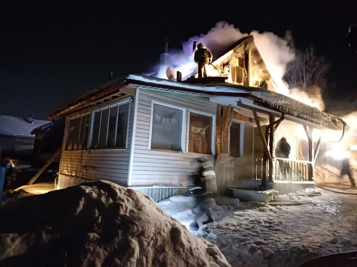 Больше часа тушили пожарные загоревшийся чердак в большом доме поселка Карелии