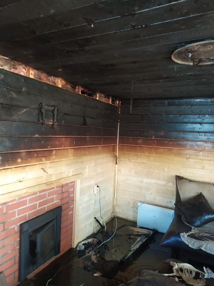 Вскоре на место происшествия приехали два пожарных расчета. К этому моменту пламя раскинулось на несколько помещений в доме.