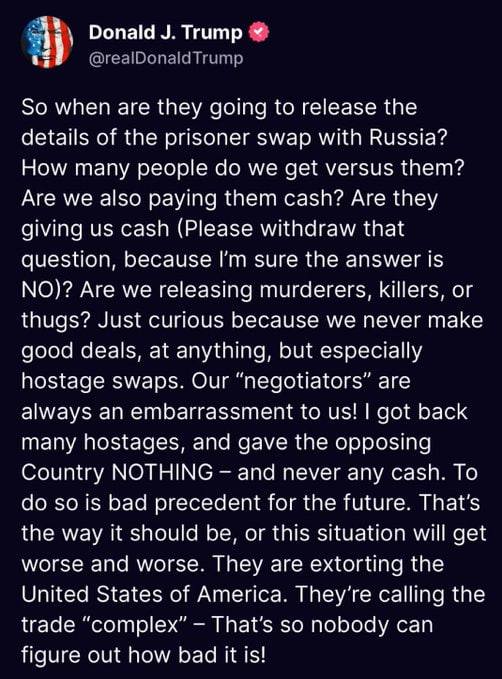 ΠΡΠ²ΡΠΈΠΉ ΠΏΡΠ΅Π·ΠΈΠ΄Π΅Π½Ρ Π‘Π¨Π ΡΠ°ΡΠΊΡΠΈΡΠΈΠΊΠΎΠ²Π°Π» Π°ΠΌΠ΅ΡΠΈΠΊΠ°Π½ΡΠΊΠΈΠ΅ Π²Π»Π°ΡΡΠΈ ΠΏΠΎ ΠΈΡΠΎΠ³Π°ΠΌ ΠΌΠ°ΡΡΡΠ°Π±Π½ΠΎΠ³ΠΎ ΠΎΠ±ΠΌΠ΅Π½Π° Π·Π°ΠΊΠ»ΡΡΠ΅Π½Π½ΡΠΌΠΈ.