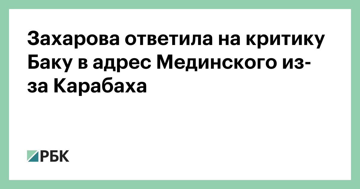 «Не надо выдергивать из контекста не существующие тезисы и менять слова местами, придавая им совершенно иное значение. Россия официально признает данный регион территорией Азербайджана. Мединский же говорил об историческом аспекте, социокультурных особенностях и боли людей. Речь шла исключительно о трагедии вооруженного конфликта», — сказала Захарова РБК.