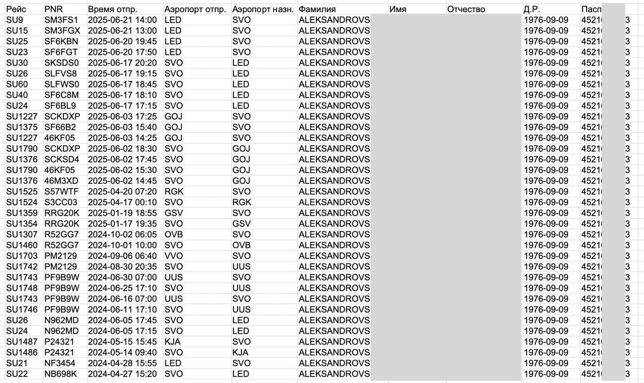 В качестве доказательства утечки данных с серверов «Аэрофлота», которую опровергает Роскомнадзор, хакеры выложили в сеть фрагменты из базы данных компании, включая информацию о бронировании билетов на имя гендиректора «Аэрофлота» Сергея Александровского.