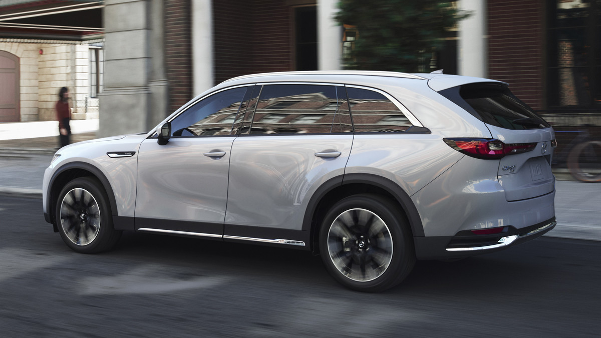Главным изменением стало появление нового «затемнённого» исполнения Premium Sport. Такой CX-90 получил решётку радиатора из глянцевого чёрного пластика, тёмные хромированные декоративные элементы, оригинальные двухцветные колёсные диски размером 21 дюйм, чёрные корпуса традиционных наружных зеркал и такого же цвета рейлинги на крыше. В списке оснащения числятся багажная дверь с электроприводом и функцией открывания без помощи рук, а также панорамный люк.
