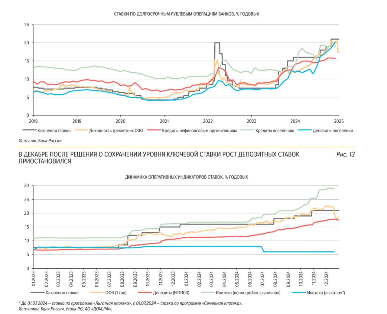 В стремлении привлечь пассивы, улучшающие норматив ликвидности, банки увеличивали ставки по депозитам юридических лиц. Они были готовы предлагать крупным корпоративным клиентам премию по депозитам 2–3 п.п. к ключевой ставке vs нормы около 1 п.п.