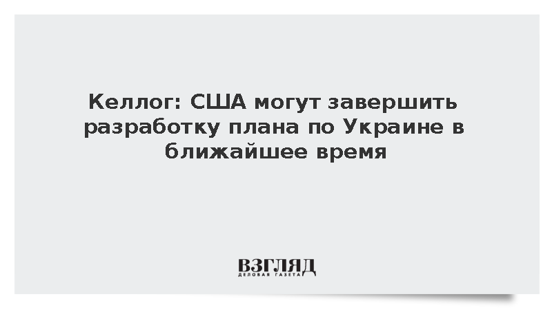 Администрация США готовится завершить план по урегулированию конфликта на Украине в ближайшие дни или недели, сообщил спецпосланник Кит Келлог.