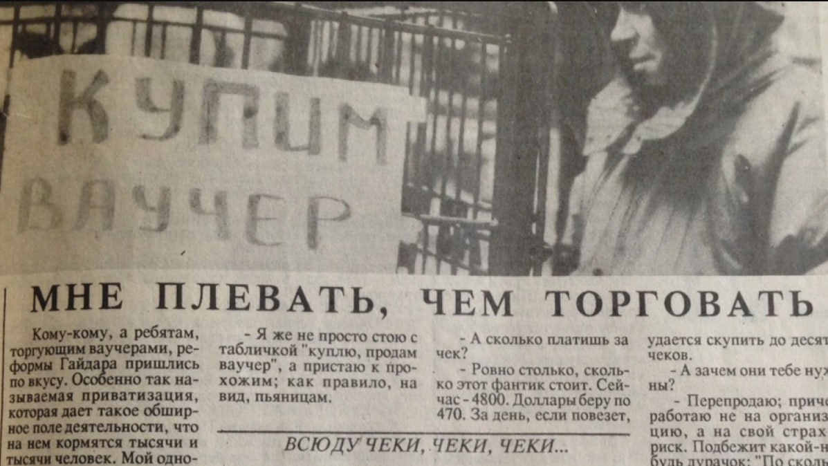 А акции? С акциями получилось интереснее всего. Государство самоустранилось от процесса, за ваучеры можно было получить и 1, и 100, и 1000 акций какого-то предприятия. Ваучеры несли в чековые фонды и ждали дивидендов. Но из 646 фондов только 136 выплатили акционерам хоть что-то. Остальные просто растворились.