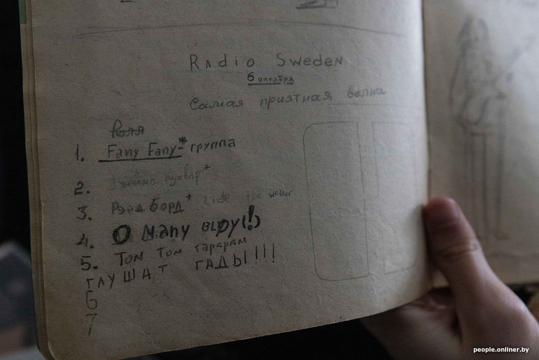 Помимо пластинок, был еще один — не очень законный — способ для советского человека послушать актуальную западную музыку — поймать волну «Голоса Америки». Вернее, даже не волну, а то, что от нее оставалось: глушили станцию нещадно — по понятным причинам. Однако иногда что-то прорывалось в эфир, и можно было записать песню или хорошую программу о музыке, которые регулярно выходили там специально для привлечения советской молодежи. Олег тоже неоднократно крутил ручку приемника в поисках заветных частот. И даже вел специальную тетрадочку, в которую выписывал все понравившиеся песни из эфира и описывал свои впечатления от них. Случайно наткнулись на страничку с той самой Fanny Fanny — кажется, в 1971 году она действительно была очень популярна. «Глушат, гады!!!» — так прерывается плей-лист того дня. Сколько боли в этой надписи.