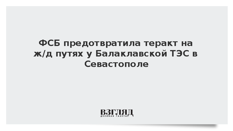 ФСБ предотвратила попытку теракта на железнодорожных путях в Севастополе вблизи Балаклавской теплоэлектростанции, передает ТАСС. По данным Центра общественных связей ФСБ, задержан подозреваемый, который действовал по заданию Службы безопасности Украины.