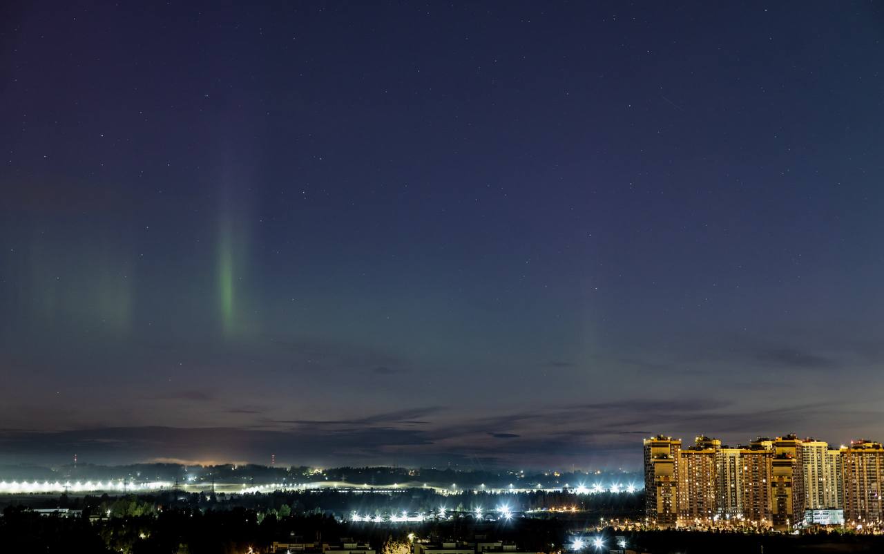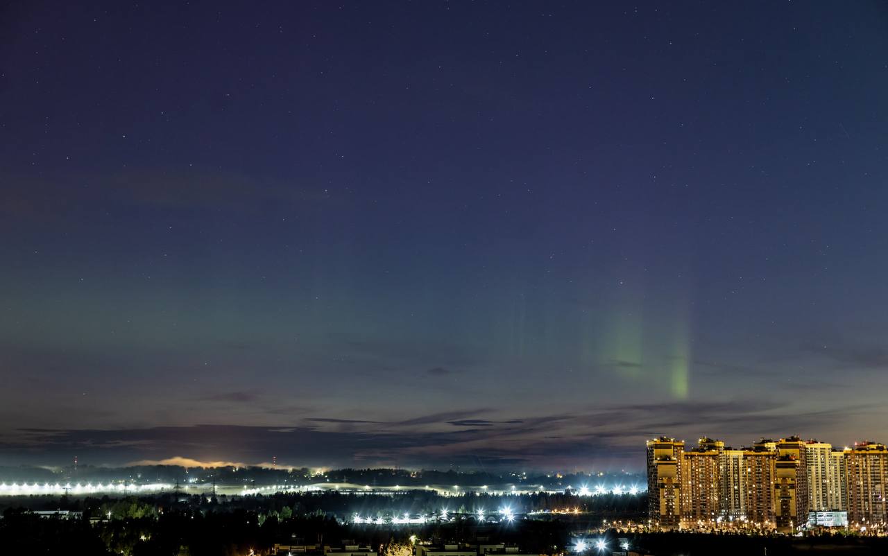 Ночное небо над Петербургом озарило северное сияние